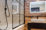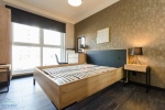 Apartament składa się z dużego salonu z balkonem, połączonego z otwartą kuchnią, sypialni, gabinetu, przedpokoju oraz dwóch łazienek.