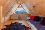 PIĘTRO: Duża sypialnia z dwoma balkonami, w tym jeden z widokiem na Giewont, łazienka kabiną prysznicową, częścią przygotowaną na pralnię oraz toaletą.