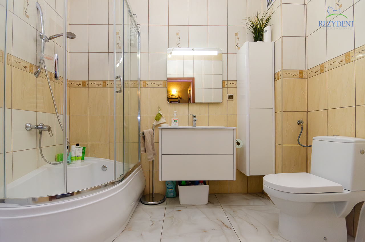 - łazienka z kabiną prysznicową oraz wc