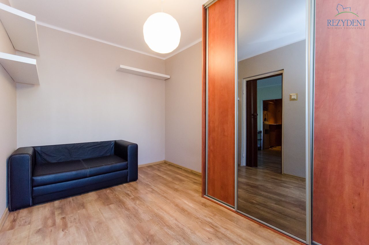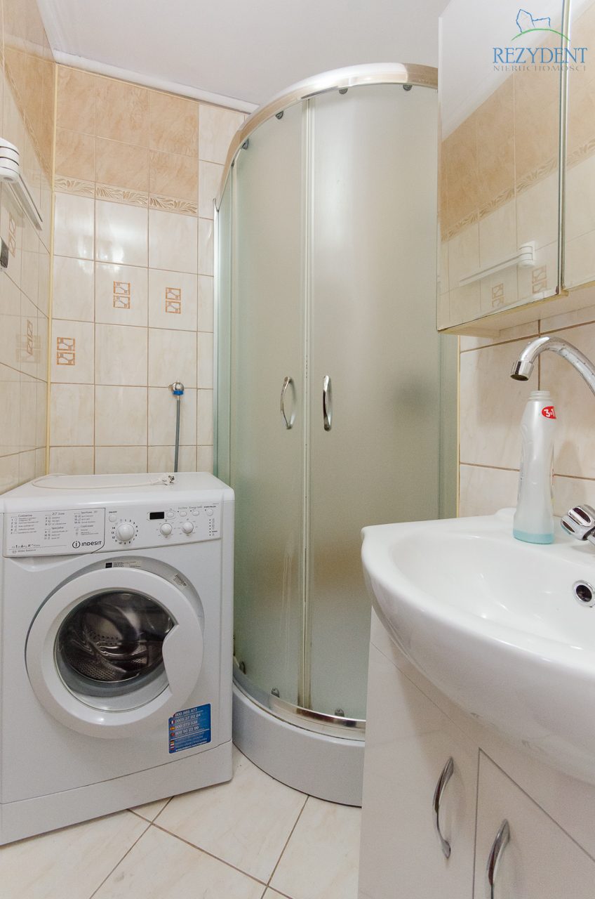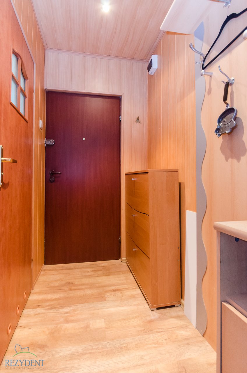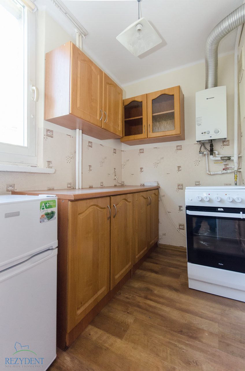 Mieszkanie składa się z 2 pokoi, oddzielnej, widnej kuchni, przedpokoju raz łazienki połączonej z WC. Na podłogach położone panele, na ścianach gładzie. W jednym z pokoi zabudowana duża szafa. Kuchnia umeblowana i wyposażona w AGD (piec gazowy z piekarnikiem elektrycznym ,lodówka z zamrażalnikiem. Łazienka wykończona glazurą, zainstalowana kabina natryskowa, umywalka, WC, pralka)